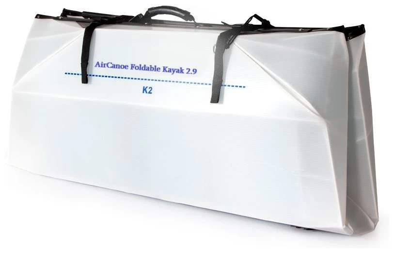 De AirCanoe Foldable Kayak 2.9 heeft een pakmaat van 110 cm x 28 cm x 48 cm (43x11x19 Inch) en een gewicht van 11,5 kg (25,3 lbs). Wanneer opgevouwen heeft de kajak een handvat om hem gemakkelijk te dragen, hij is ook klein genoeg om met de auto en het openbaar vervoer te vervoeren.